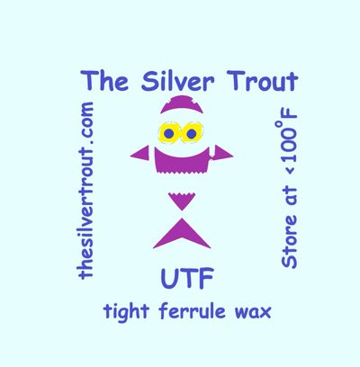 On occasion I have come across bamboo fly rods with ultra tight nickel silver ferrules that would get stuck together after fishing. I have created a low viscosity wax formula with micro crystalline waxes and a high quality lubricating oil. Rubbing the UTF wax with fingers on the male ferrules creates a micro wax layer that ensures the ferrules will come apart and not get stuck together! Also the wax content keeps rod blanks straight without rotation! Available today in a 1/2 ounce container.